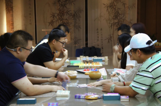 活動設(shè)置了“香牌制作、棋牌游戲”等趣味互動游戲。在香牌制作的活動中,木緣空間主講老師從代表性的香料及香具的運用到香牌的配方和制作工序,輕聲細語娓娓道來。隨后,老師分發(fā)調(diào)配好的香粉和粘土,安排大家以小組為單位參加比賽,大家互幫互助共同完成了作品,獲勝者獲得了古琴試聽課。